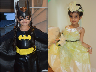 She watches fairy tale movies but has a penchant for cartoon action flicks. One moment, she will be ‘riding’ around as a knight – a play bucket for a helmet, a towel paper roll for a sword, a sheet wrapped around for armour – on her rocking horse and the next hour, she will be wearing her toy princess crown, with the ‘armour’ transformed into a dress. One Halloween, she dressed as a princess and for the last one, she was Bat Girl.